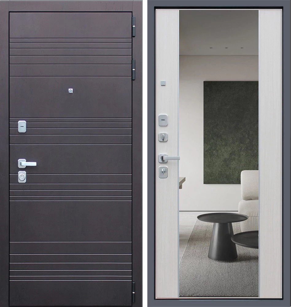Надежная входная Дверь Дуэт с зеркалом премиум класса по цене 49 910 руб. Большая толщина стали защитит от проникновения в ваш дом, квартиру или коттедж. Используется очень качественная фурнитура: замки, цилиндры, ручки, защелки. Покрытие и отделка двери изготовлено под внимательным контролем производителя. Дверь имеет долгий срок службы и гарантию.